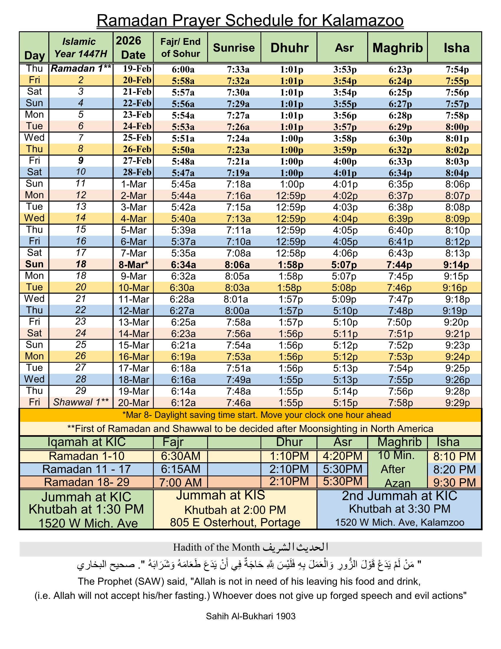 November 2018 Prayer TimesNovember 2018 Prayer Times